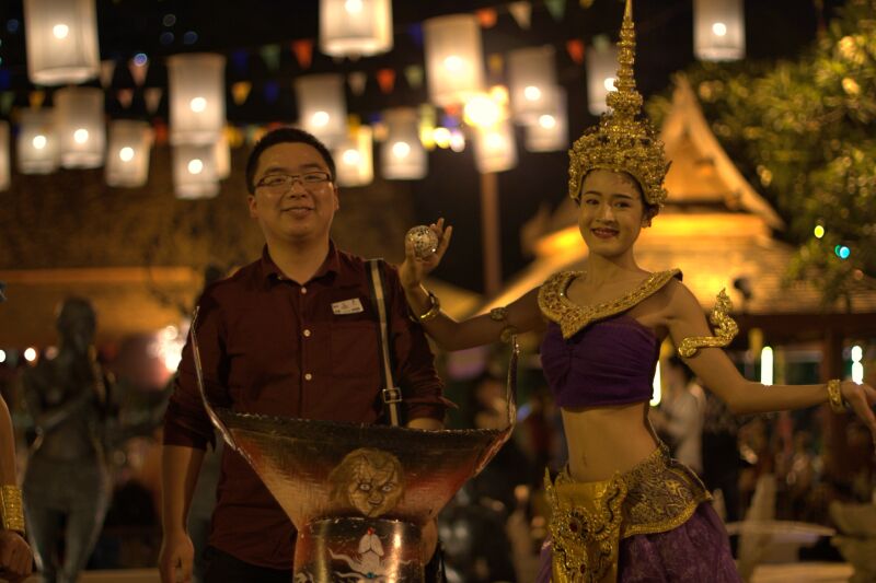第一天早上七點鐘,大家搭乘旅游大巴前往寧波機場,一路上歡聲笑語,甚是融洽!中午12:30,航班準時起飛,經(jīng)過長達四個半小時的飛行到達曼谷廊曼機場。一出機場,熱情的泰國妹子為我們戴上鮮花,并對我們說一句“薩瓦迪卡”,意為祝福平安。隨后當?shù)氐膬晌粚?dǎo)游帶領(lǐng)我們分別上了兩輛大巴,經(jīng)過近一個小時的車程,我們到達第一站——暹羅夢幻劇場,在這里我們和大象合影,并欣賞了泰國獨特的民族風情舞蹈。之后,進入泰國規(guī)模最大的宏偉華麗劇院觀賞世界級的泰國藝術(shù)和文化遺產(chǎn)表演,深入地了解泰國四個朝代和各個部域民村的“泰國農(nóng)村”生活、傳統(tǒng)、文化以及藝術(shù)和手工藝。