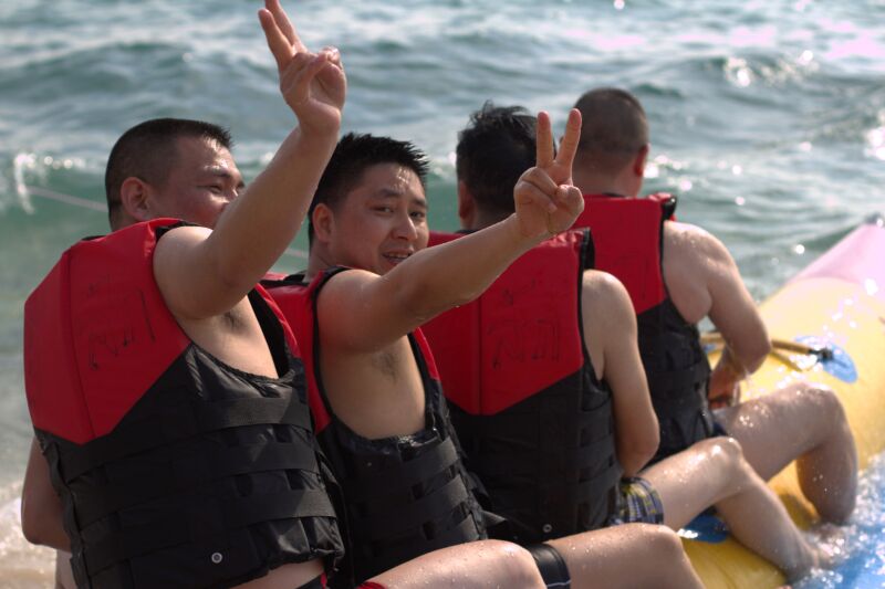 第三天早餐過后,我們收拾行李,開始向著芭提雅出發(fā)。芭堤雅是泰國的一顆璀璨明珠,這里的風光旖旎,氣候宜人,享有“東方夏威夷”之稱。每當夜晚來臨,這里燈火通明,行人接踵而至,它是典型的聲色犬馬的世界,也是男人們的天堂。作為一個臨太平洋的國度,美麗的陽光海灘自然非去不可,我們乘坐快艇前往月亮灣和金沙島,享受陽光、沙灘、海水,乘坐降落傘、香蕉船、水上摩托、快艇沖浪、海中潛水……盡情體驗種種刺激。泰國的一大特色便是享譽世界的變性人文化,合理地存在于泰國本土。在“暹羅公主號”上,我們親身經(jīng)歷了最負盛名的人妖表演,“公主們”身段妖嬈,五官精致,歌舞精湛,雌雄難辨。
